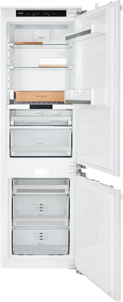 Встраиваемый двухкамерный холодильник с большим объемом 226 л и перенавешиваемыми дверьми. Удобное сенсорное управление позволяет легко устанавливать нужную температуру. Система No Frost устраняет необходимость в разморозке, а также экономит электроэнергию. Зона свежести DuraFresh™ с независимым температурным режимом создает идеальный микроклимат для хранения мяса, рыбы и овощей. Адаптивный контроль автоматически регулирует температуру, отслеживая привычки пользователя: температура снижается в периоды частого использования прибора, тем самым сохраняя продукты свежими на 20% дольше. Деревянные аксессуары выполнены из бука и предназначены для длительного использования.
