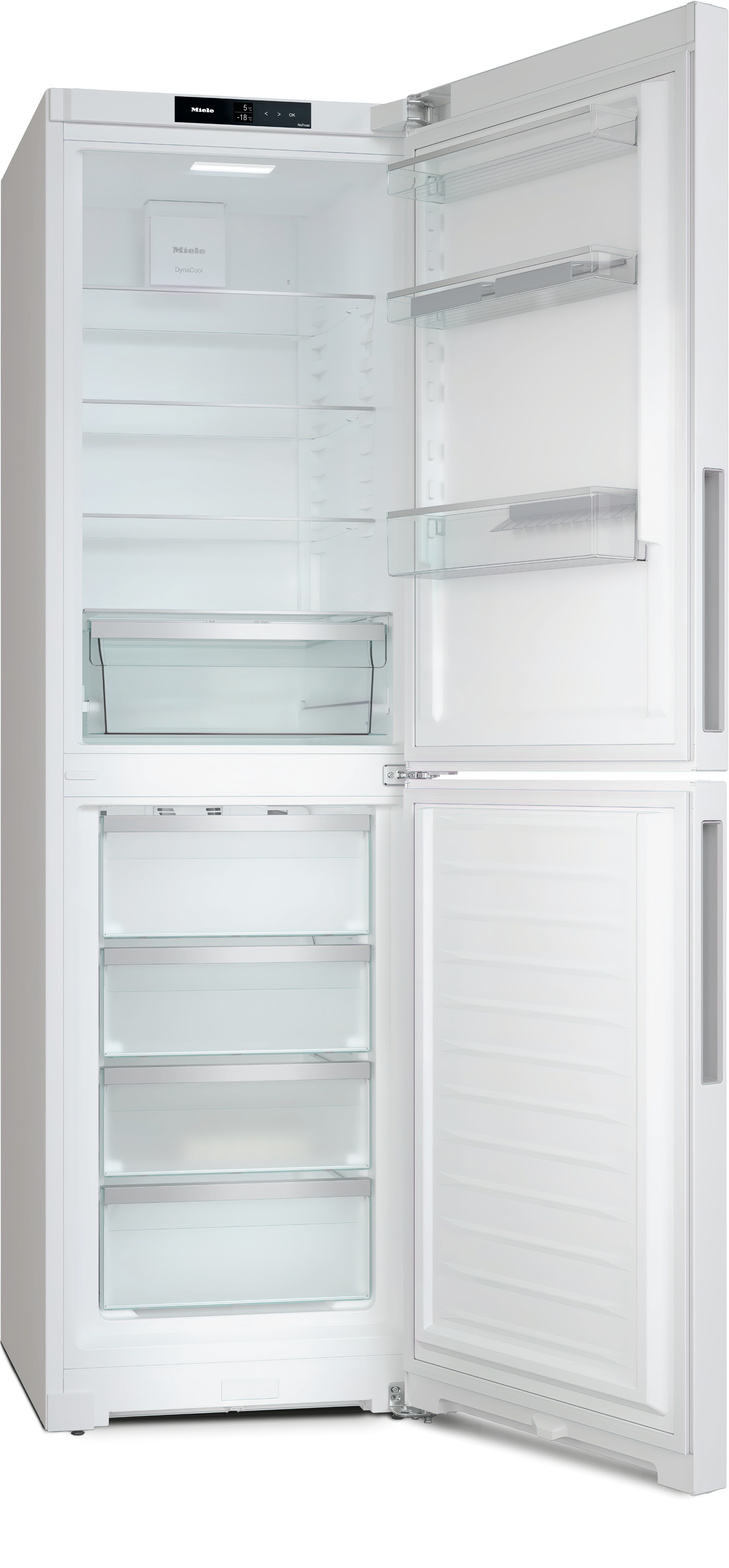 Отдельно стоящая комбинация холодильника с морозильной камерой с функциями DailyFresh, NoFrost и четырьмя морозильными ящиками для оптимального хранения.