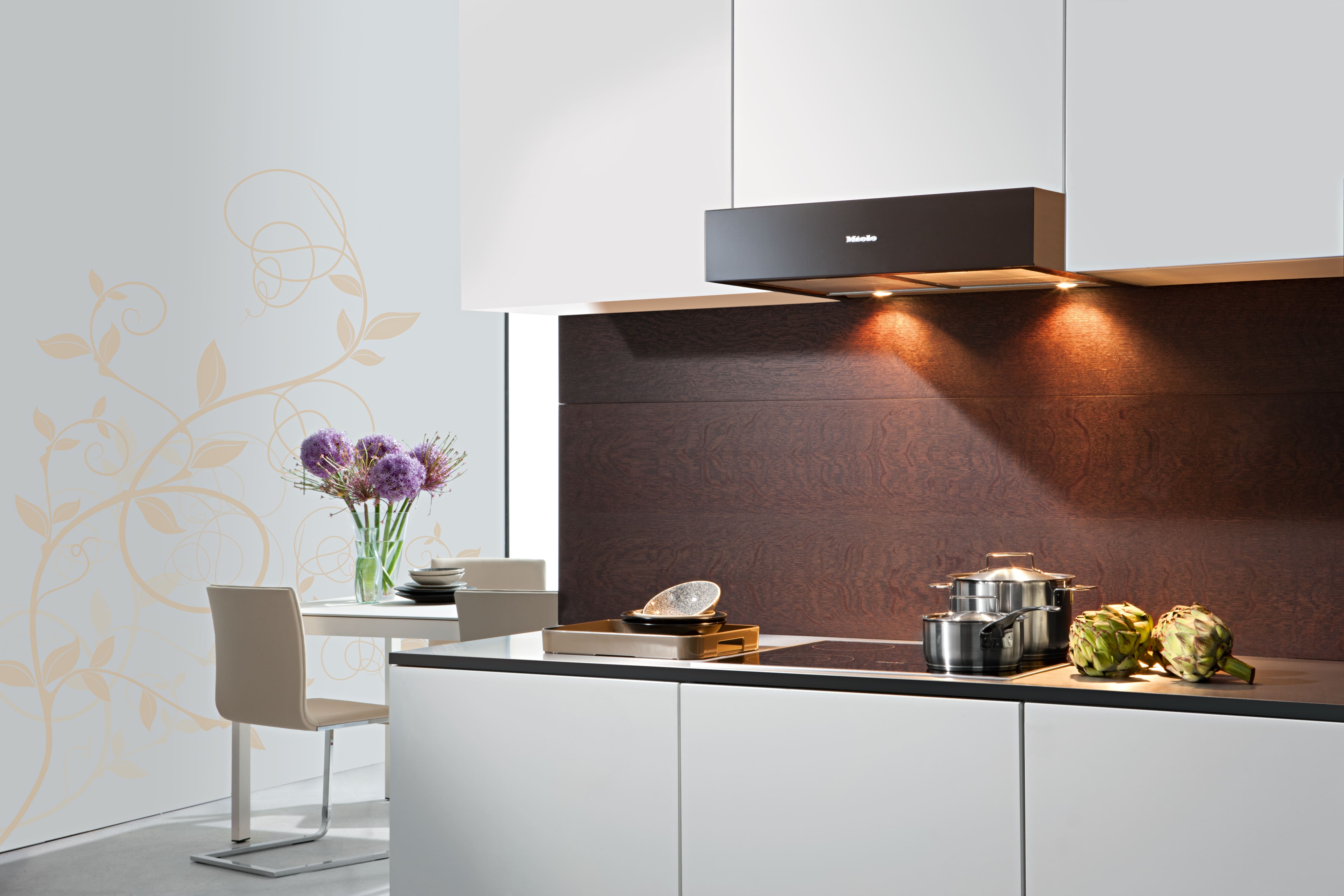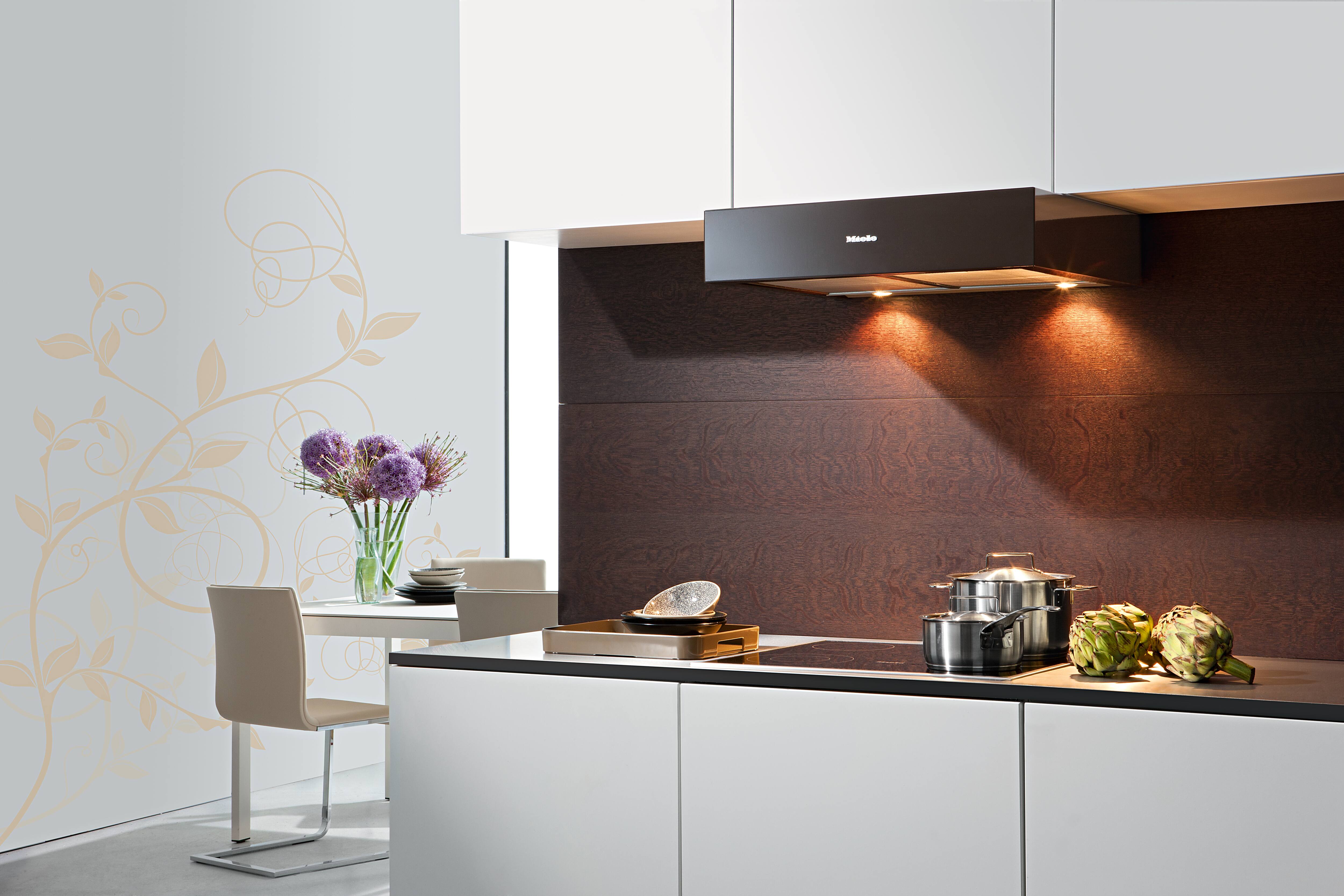 Вытяжка Миле для монтажа под навесной шкаф со светодиодной подсветкой и ползунковым переключателем для удобной работы.