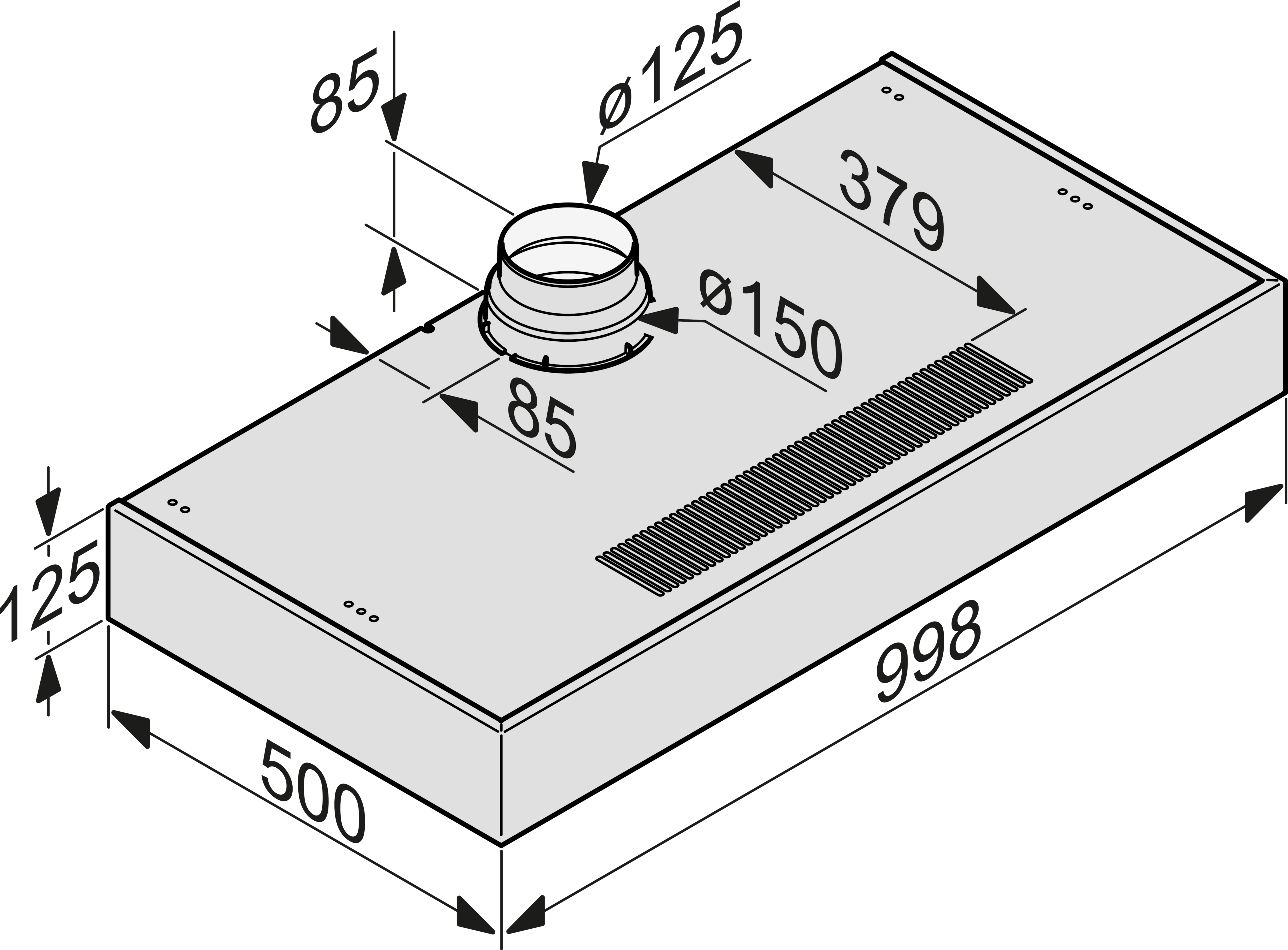 Строгий дизайн дизайн – компактное решение шириной 998 мм.
