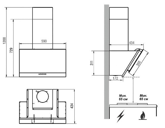 Рекомендуемая высота расположения над газовой плитой, см