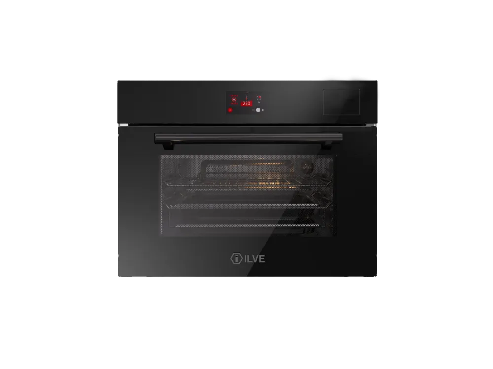 Многофункциональный компактный электрический духовой шкаф с функциями пароварки и микроволновой печи.