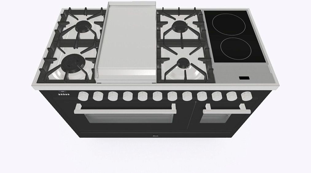 газовая с Fry-Top и индукционными варочными зонами, двухконторная конфорка DUAL