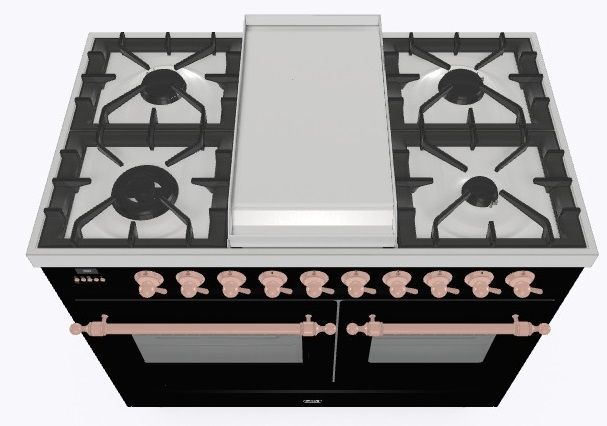 • Тип конфорок: 4 газовые конфорки, Dual конфорка, жарочная поверхность Fry Top