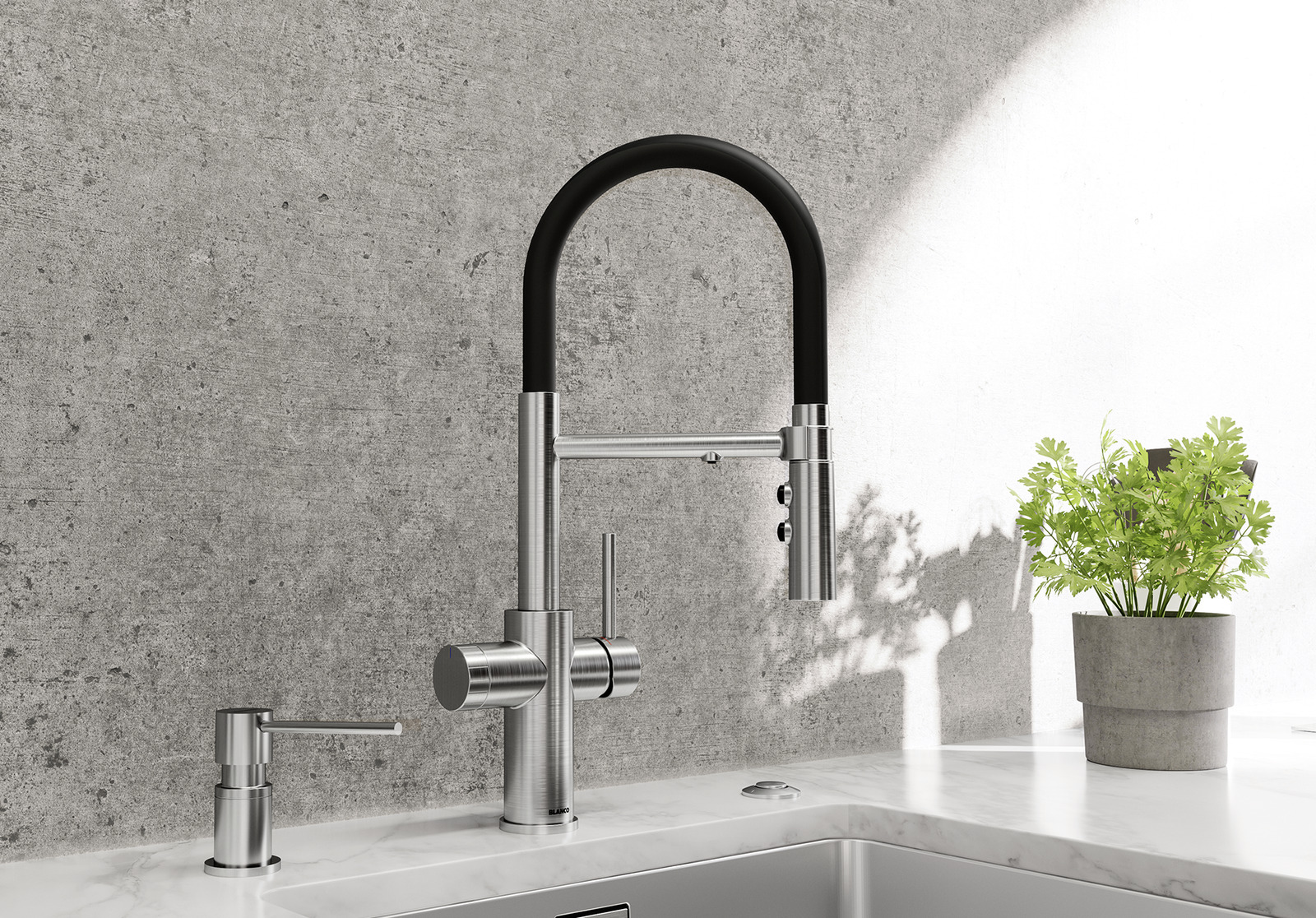 Смеситель CATRIS-S Flexo Filter 526706 от Blanco воплощает философию бескомпромиссного качества, инновационного дизайна и функциональности, превращая самое активное место на кухне в продуманный, эргономичный и эстетичный центр для приготовления пищи.