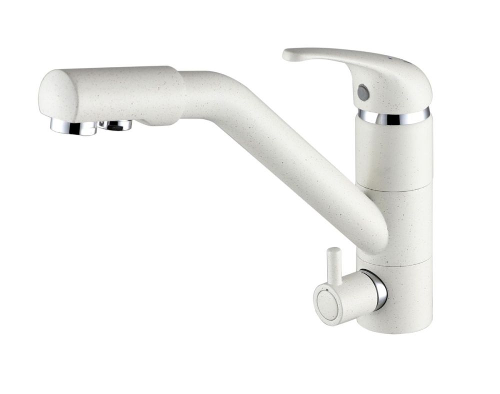 предусматривает поступление фильтрованной воды, которая не смешивается с водопроводной. Питьевая вода подается через отдельные трубку и аэратор, а для регулирования питьевой воды предусмотрена отдельная ручка.